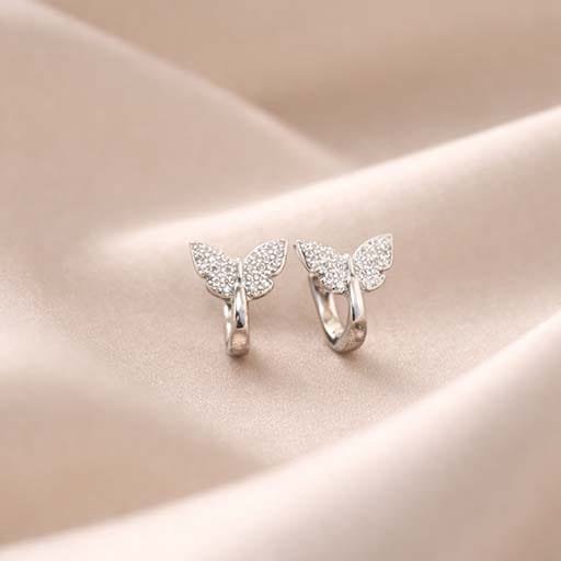 Add a graceful charm to your look with these Butterfly Sparkle Silver Hoop Earrings. Designed with a beautifully crafted butterfly motif and encrusted with fine cubic zirconia stones, these earrings symbolize elegance and transformation. The compact hoop style offers comfort for all-day wear while adding a subtle sparkle that complements both ethnic and western outfits. Perfect for daily wear, casual outings, gifting, and special moments.