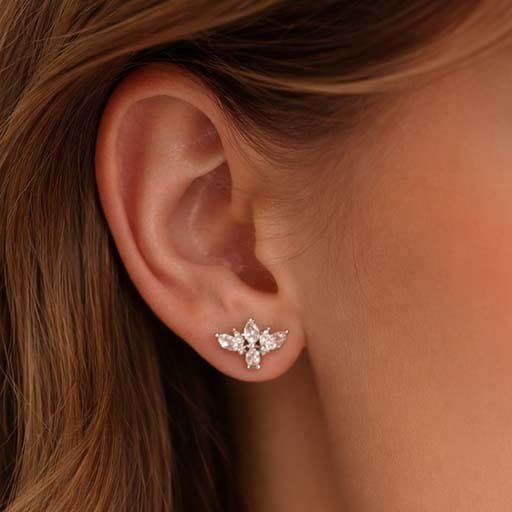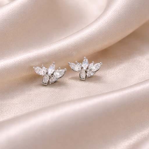 Enhance your everyday elegance with these Crystal Bloom Silver Stud Earrings. Crafted with carefully arranged marquise-cut cubic zirconia stones forming a delicate floral design, these studs offer a soft yet radiant sparkle. Lightweight and comfortable, they are perfect for daily wear, office looks, festive occasions, and graceful gifting. A timeless design that blends beautifully with both ethnic and western outfits.